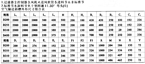 空氣斜槽輸送機由數個薄鋼制成的槽子聯接組成,并沿其輸送方向布置成一定的斜度。空氣輸送斜槽槽體沿著輸送方向安裝成向下傾斜4%~6%的斜度。